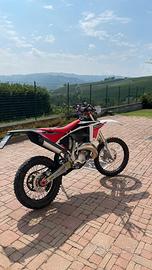 Fantic xe 125 enduro del 2022, primo proprietario, preparata da gara con pezzi in ergal ovunque, piastre rosse, disco posteriore ricavato dal pieno, tagliando appena fatto, 75 ore all'attivo primo pistone, pacco lamellare vforce4r, copri disco posteriore, doppia mappatura, impianto elettrico semplificato, paramani bianchi rtech, manubrio rosso in ergal, unica pecca una piccola bozza sulla pancia che però non incide sulle prestazioni della moto.