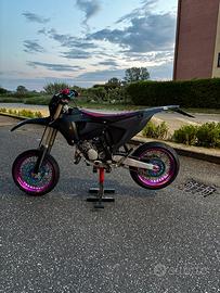 ultimamente è stata fatta la conversione a motard con cerchi falco colorazione rosa e azzurro (kit completo, compreso di dischi spostapinza e corona) dal valore di 1400?, gommati con pirelli diablo rosso 3 (ant. 100/60 rz17 post. 150/60 rz17) letteralmente nuove.