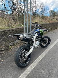 È allestita con kit plastiche yzf 2022 e una coppia di cerchi faba motard.