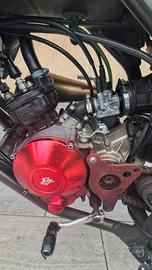 La moto monta cilindro dr ,carbu 21 phbg ,pacco lamellare malossi vl8 e collettore top 360 gradi.