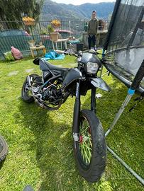 la moto monta 80 polini montato 1 mese fa, frizione top performance rinforzata, pacco lamellare malossi, collettore malossi, carburatore 21 dellorto, albero stage 6, cuscinetti di banco nuovi filtro aria malossi, più tutte i pezzi originali