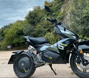 Scooter 100% elettrico di un anno circa e meno di 2.000km, con caricatore da presa dimestica, paragonabile ad un 125, autonomia di circa 140km, tasto sport che aumenta del doppio la potenza motore, freni a disco, strumentazione digitale, illuminazione full led, comodo e molto agile e veloce