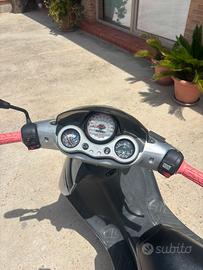 monta il 50cc 2t originale, marmitta giannelli sport(omologata con anche libretto), rulli polini,cinghia malossi.