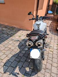 Come da titolo, vendo esclusivamente per passaggio ad altro genere, splendida fz6 600. La moto è sempre stata tenuta maniacalmente. Solo un anno fa ho effettuato completa pulizia dell'impianto di raffreddamento. Utilizzata solo d'estate e tenuta su cavalletti per il resto dell'anno. Va solamente gommata in quanto la uso davvero poco e non ho avuto occasione di cambiare le gomme. Non ha nessun tipo di problema e non ne ha mai presentati. Compreso nel prezzo scarico akrapovic in titanio dal sound fantastico, non surriscalda, ed è compreso di db killer rimovibile con 2 viti. (solo lo scarico ha un valore di oltre 1.000€. Disponibile anche scarico originale. Potete tranquillamente effettuare qualsiasi prova. La moto va che è una meraviglia nonostante l'età e in autostrada tiene perfettamente le alte velocità al pari delle sorella maggiori. Per ulteriori info contattatemi.