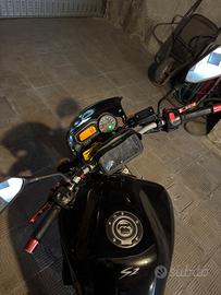 Vendo moto FZ6 S2, anno 2008. La moto ha 18000km e le gomme (Angel Pirelli Grand Turismo) sono praticamente nuove in quanto cambiate anno scorso con meno di 1000km. Revisione in scadenza e provvederò personalmente prima della vendita, tagliando effettuato inizio 2026 con cambio filtri, olio e pasticche. Tubi anteriori in treccia e cupolino barracuda. Scarico e frecce originali. Ha il carter leggermente rigato. Mai incidentata e tenuta sempre in garage. Cedo anche una seconda sella (rossa e nera) fatta sellare da me e caricatore USB. Prezzo trattabile.