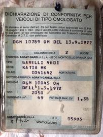 Garelli Katia funzionante in buono stato. Segni del tempo ma conservato bene. Libretto piccolo,non necessita di passaggio