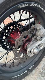 la moto monta cerchi faba rossi e neri con mozzo rosso,pinza davanti 320mm,tagliandata regolarmente ogni 30 ore