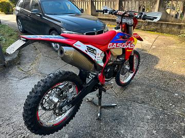 Vendo gas gas ecf 350 x passaggio a 2t tenuta in maniera maniacale. La moto è dotata di molti accessori come manubrio rhental 999, ventola radiatore,faro a led, calze forcelle, copri disco anteriore, pulsante mappe, copri carter sia dx che sx, copri forcellone posteriore, scarico akrapovic, porta targa estraibile,mousse anteriore e posteriore,plastiche sostituite da nuova quindi le originali non hanno neanche un graffio! Sono l'unico proprietario quindi ho tutta la scatola con le cose originali. La richiesta con tutto è di 7000 € altrimenti rimettendola tutta (originale) è di 6000€. X altre informazioni contattatemi tranquillamente.