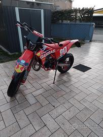 la moto è provvista di tripla omologazione, nel prezzo sono comprese la coppia di ruote con gomme tassellate, cerchi da cross che montano i dischi dei freni originali, e il terminale originale, essendo che monta una dbr in alluminio.