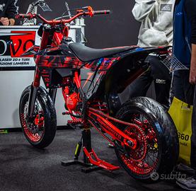 Come da titolo vendo GASGAS 125 MC 2023 Motard , é targata con tripla omologazione a libretto . É l'ultima annata a carburatore . Moto tirata a lucido e in stato migliore del nuovo . É stata rifatta completamente a telaio . Ogni parte " rossa " é stata verniciata a polvere e le componenti "nere " sono verniciate a cerakote , forcelle piastre e molte altre parti sono anodizzate rosse e nere . Insieme alla moto cedo faro , frecce , specchietti, cavalletto e porta targa con luci e frecce integrato. Lista dei lavori e di cosa monta : - Verniciatura completa polvere , cerakote e anodizzazione : 4000? - Manubrio pbr + paracolpi : 100? - trasmissione completa pbr : 200? - boyesen sinistro : 100? - copri sella onegripper + spugna : 130? - power parts ergal nicecnc : 600? - fondello in carbonio : 100? - paratelai in carbonio : 200? - plastiche nuove nere acerbis : 100? - hgs completo : 600? - disco 320 breacking : 200? - cerchi faba con mozzo in ergal rosso : 1000? - gomme nuove di pacca : 250? - porta targa estraibile e pieghevole in inox : 100? - manopole nuove : 20? - immatricolazione + tripla omologazione : 1500? - revisione e taratura completa forcelle : 300? - filtro aria nuovo 25? - impianto elettrico per frecce e luci : 200? - Blocco completo : 1500? - candela njk racing : 25? possiedo anche tutti i ricambi originali e altre power parts , previo accordo li cedo insieme alla moto . il prezzo indicato è per immediato realizzo , per farla come vedete in foto ci ho speso più di 18k . Possibilità di permute con yzf 450 , exc f 350 , fe 350 , ec 350 f , exc f 450 , crf 450 , smc- r 690 , sm 701 . NON SVENDO . non fatemi perdere tempo grazie . sx 125 , yz 125 , tc 125 , xx 125 , tm 125 , exc 125 , cr 125 kx 125