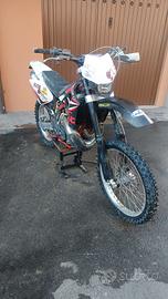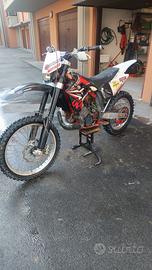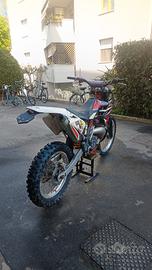 vendo gasgas EC 250 2005 targato con tripla omologazione enduro/cross/Motard motore con 18 ore da rifacimento completo. mousse e gomme nuove davanti e dietro disco e pastiglie freno posteriore nuovi, 1 uscita frizione magura aggiornata con pompa e attuatore nuovi, questa versione montava con olio dot 4. pancia originale con scarico Messico. pacco lamellare v force 3 nuovo con kit nuovo mai montato di lamelle in carbonio di ricambio già comprate. Paramotore non presente in foto e parapancia da enduro in carbonio. manca un paramano che si è staccato in seguito ad una caduta. necessità di passaggio di proprietà, la targa è stata tolta per un'unica uscita in pista cross ricambi: kit leveraggi mono nuovi ancora da montare parafango posteriore usato in buone condizioni corona originale e disco freno posteriore ancora buono. dispongo anche dei ricambi sostituiti in precedenza, uno scatolone pieno. per qualsiasi informazione rispondo tranquillamente su subito!