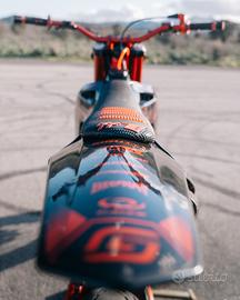 Ogni parte " rossa " é stata verniciata a polvere e le componenti "nere " sono verniciate a cerakote, forcelle piastre e molte altre parti sono anodizzate rosse e nere.