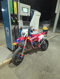 vendo gasgas mc 125 2022,ultimo anno a carburatore,stesso blocco e telaio ktm sx 125 2022(cambia solo il colore del telaio e le plastiche) la moto è stata realizzata cosi come in foto da VM racing,a Verona. La moto nasce cross,quindi fornita di leveraggio,ed è stata trasformata in supermoto. La moto è fornita di disco anteriore maggiorato(320mm) e pinza e pompa accossato. Cerchi excel,sospensioni tarate per strada. Piastre di sterzo in ergal. Piatta in carbonio(wrap) Hgs completo e testa VHM. Travasi rivisti,pistone monofascia 80 ore(da rifare nuovo a breve) cilindro rivisto e valvola di scarico ripulita portata nuova. gas rapido porta targa regolabile VM racing. tripla omologazione. La moto è in stato di revisione straordinaria,verrà documentato tutto tramite fatture. per video e foto conttatatemi. inoltre è presente una situazione da spiegare in privato. Prezzo trattabile