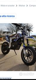 Vendo causa passaggio di categoria minicross elettrico 800w, batteria nuova con gomma Michelin nuova di ricambio. Moto con 3 velocità ottima per iniziare ad avvicinarsi al mondo delle 2 ruote . ottimo stato