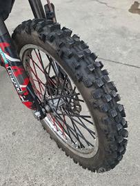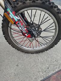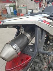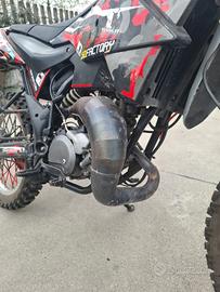 Moto da enduro eccellente, vendiamo causa cambio categoria. Gommata nuova (gomme con appena 200 km.), grafiche speciali (rimovibili) il colore sotto le grafiche è bianco e nero, scarico Polini e marmitta in carbonio con certificato di omologazione, cilindro TOP 85 cm³ con albero motore da competizione e cuscinetti rinforzati, carburatore dell'orto 21, catena rinforzata DID colore rosso, carter volano colore rosso, protezione pignone Carenzi in alluminio rosso, paramani Circuit, paradenti Voca e specchietti ripiegabili. Tante altre cose come le frecce a led, il tubi benzina rossi, i copri raggi bicolore, ecc. Attenzione moto super elaborata e velocissima (supera i 100 Km/h), non adatta a chi vuole una moto regolare. Il cruscottino non funziona fina da quando era nuova. Visibile a Segrate (Milano), chiamare ore ufficio 8/12 - 14/18