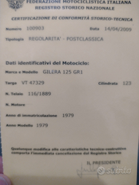 Vendo Gilera 125 Gr1 ( Gilera regolarità 1) anno 1979 iscritta FMI. Conservata in buone condizioni. Documenti regolari per passaggio proprietà.