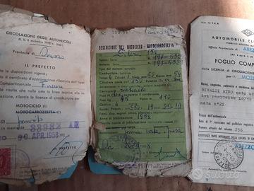 Gilera 150 sport del 1958, motore libero, con libretto e foglio complementare, n telaio e motore corrispondenti . Radiata d'ufficio