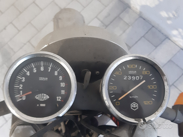 Moto parzialmente restaurata, con sella in pelle nuova, cerchi inox così come lo scarico, gomme nuove carrozzeria riverniciatura e con nuove decalcomanie, motore smontato e revisionato con kit guarnizione testato montato nuovo originale! Da rivedere impianto elettrico. Moto marciante fino al 2021, ha una ciclistica da paura. Sempre in garage.
