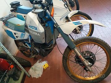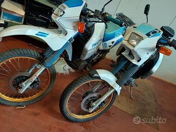 Causa inutilizzo e troppi mezzi in garage, vendo GILERA DAKOTA 350 del 1986 targa originale TO, più altra gemella non targata ma funzionante e completa. La moto targata è stata da me acquistata nel 2020 e tagliandata, gommata nuova e revisionata in quel momento per iniziare ad utilizzarla. Fatti pochi giri, con l'arrivo del periodo COVID la moto è poi rimasta ferma in garage. Dato che, come si vede dalle foto, monta un parafango basso al posto del suo originale, avevo trovato al tempo una gemella per ricambi con il parafango anteriore alto. Anche questa è comunque stata rimessa in funzione e tagliandata nel 2020 (aveva solo il cambio bloccato causa crociera rotta) e risulta quindi funzionante o comunque ottima donatrice completa di ricambi. Visto il fermo degli ultimi 4 anni, necessitano sicuramente di un cambio batteria e un tagliando, ma confermo la perfetta funzionalità. Segnalo invece che i supporti frecce originali, in una mescola di gomma e plastica molto soggetta a cristallizzare e rompersi col tempo, hanno mostrato la loro fragilità e saranno da sostituire con alternative più fresche ed elastiche. Chi fosse interessato mi contatti direttamente per ogni approfondimento, mezzi visibili e da ritirare a CONEGLIANO (TV). Eventualmente valuto anche vendita separata accordandosi con l'interessato