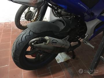 Vendo Gilera DNA 70 Malossi, con carburatore dell'orto 21 e un altro carburatore aggiuntivo del 19,5; marmitta Polini Super Race; gomme da sostituire, olio freni da aggiungere e riparare tubo di gomma, batteria da aggiungere e altra manutenzione da effettuare a carico dell'acquirente.