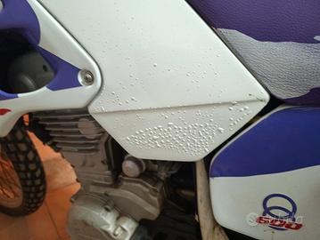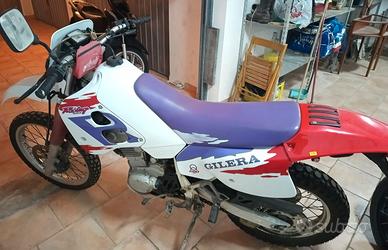 VENDO GILERA RC 600 DEL 1993 - BEN CONSERVATA, POCHI KM Gilera RC 600 del 1993, un'iconica enduro/dualsport degli anni '90. La moto si presenta in buone condizioni e con la sua livrea originale "R" di colore bianco, viola e rosso, completa di sella viola in ottime condizioni. Chilometraggio: Il contachilometri segna solo 31.452 km, come visibile in foto. Carrozzeria: La moto è completa e originale. La vernice e le decalcomanie sono ben mantenute per la sua età. Nota bene: su un fianchetto ci sono alcuni rigonfiamenti della vernice come si può vedere nelle foto. Meccanica: Equipaggiata con il potente e affidabile motore monocilindrico da 600 cc. Pneumatici: Attualmente monta pneumatici tassellati da fuoristrada, in ottimo stato. Documenti: La moto ha i documenti originali ed è stata immatricolata per la prima volta a giugno del 1993. Questo la rende una candidata ideale per l'iscrizione ai registri storici. Note Aggiuntive: La moto è sempre stata tenuta al coperto e ben tenuta. Perfetta per collezionisti o per chi desidera un'enduro storica con un basso chilometraggio. Possibile visione di persona. Ulteriori foto e dettagli disponibili su richiesta.
