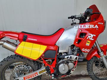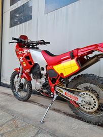 Gilera RCR 1991 una delle primissime ex reparto corse , mono ammortizzatore Ohlins ufficiale , serbatoio in alluminio Olisald , scarico Arrow , ruote ufficiali, mozzo posteriore con parastrappi come le moto della Dakar e cerchi Exell, cassa filtro grande modello Rally, motore rifatto completamente dal mitico Liba , aggiunto avviamento elettrico oltre alla leva.