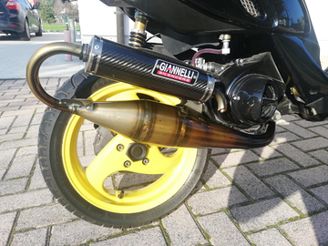Doppio freno a disco, monta gruppo termico 70cc Top Tpr, albero spalle piene Top Tpr, carburatore dell'orto 21,pacco lamellare malossi, variatore multivar Malossi, ventolino Malossi, cinghia in Kevlar Malossi, Frizione e campana Polini evolution, molla di contrasto Top, scarico Gianelli Shot V4 omologato, ammortizzatore Yess derivazione 125, Pinza freno Rpm racing, cerchi 13 pollici NRG mc2 con verniciatura in carrozzeria, sella rivestita stile Ducati Monster, frecce trasparenti e luci a led, viti in ergal, copri carter cubicato a bagno d'acqua, gomme nuove Metzeler.