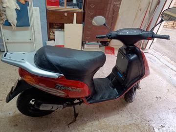 Scooter in perfettissime condizioni, pari all'originale. Tutto originale, compresi gli pneumatici. Tappetino, cassettino anteriore porta oggetti, sedile doppio posto, doppio specchietto, bloster, doppie chiavi, libretto originale. Unico problema: far controllare il carburatore, perché ha bisogno di cambiare le guarnizioni, ormai vecchie. Si mette in moto tranquillamente. Venduto senza batteria per l'accensione.