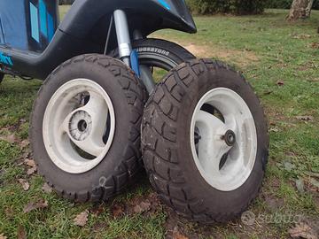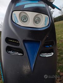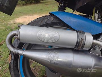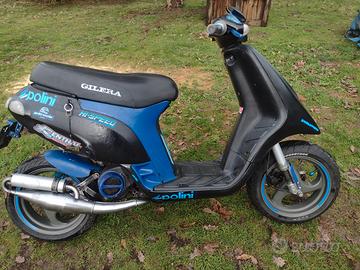 Gilera Typhoon 50cc del 1995, doppio faro alogeno anteriore, forcella anteriore e ammortizzatore posteriore nuovi, gomme stradali più cerchi gomme tassellare, cavalletto laterale e marmitta Leovince TT omologata, più pezzi originali disponibili