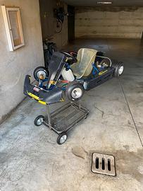 Vendo fantastico go kart comer 60 di cilindrata monomarcia , perfetto come regalo di natale per i figli che vogliono il monopattino elettrico, almeno rimangono eterosessuali. Kart perfettamente funzionante, motore rifatto da 0 con solo 5 giri di rodaggio in pista (orobikart di curno). Frizione originale appena sostituita con una malossi per scooter minarelli con molle gialle. Carburatore da 19mm a corpo farfallato dell'orto. Gomme bridgestone praticamente nuove. Rapporti corti ma cedo anche quelli lunghi. Insieme al Kart (come scritto nel titolo dell'annuncio) cedo anche il carrello che solo quello viene 120?. Vendo per inutilizzo, prezzo trattabile, NO PERDITEMPO