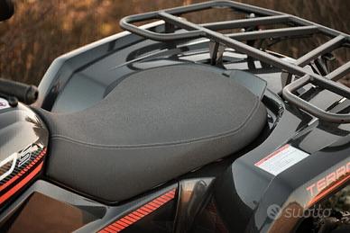 NEW GOES (CF MOTO) TERROX S 400 EFI 4x4 ***OMOLOGAZIONE T3 - TARGA GIALLA*** IN PRONTA CONSEGNA DI SERIE: verricello, gancio, sfera, bullbar anteriore - 4x4 inseribile elettronicamente, ridotte inseribili, retromarcia, paramani, presa elettrica per rimorchio, freno motore PREZZO LANCIO 4.990,00 EURO Lasciati conquistare dal nuovo GOES TERROX 400 S, con omologazione agricola, immatricolabile anche per uso privato con costi di gestione ridotti, assicurazione 150,00 euro all'anno, no obbligo di revisione e per le aziende importanti sgravi fiscali. Il quad ideale per chi desidera unire maneggevolezza e utilità al miglior prezzo. Perfetto per affrontare tutti i terreni, sia per lavoro che per divertimento, nel bosco, su strada, in spiaggia o in montagna, si adatterà a tutte le tue esigenze. DIMENSIONI Lunghezza x Larghezza x Altezza: 2190X1100X1200 mm Interasse: 1260 mm Altezza sella: 530 mm Altezza minima da terra: 240 mm Peso a secco: 358 kg Capacità di carico: 240 kg Capacità serbatoio: 14 lt MOTORE Tipo di motore: Monocilindrico 4 tempi, raffreddato a liquido, 4 valvole, SOHC Cilindrata: 400 cc Trasmissione: CVT Potenza 27cv a 7250 rpm Iniezione: EFI BOSCH TELAIO Trazione: Disinseribile 2WD/4WD Freni: Freni a disco idraulici, uno per ogni ruota Sospensioni: Ant/Post: sospensione indipendente Ammortizzatori: Ant/Post: meccanico idraulico Cerchi: Ant: 12×6.0 AT Post:12×7.5 AT Pneumatici: Ant: 25×8-12 Post: 25×10-12 Colori disponibili: NERO Omologazione Agricola T3 - 2 Posti N.B. Prezzo Franco concessionario immatricolazione e m.s.s. escluse