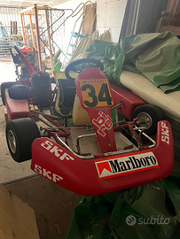 Vendo go kart usato, motore raffreddato ad aria. Telaio in buone condizioni, completo di impianto frenante e sedile. Il kart è perfetto come base per progetto o per chi vuole iniziare con un mezzo semplice e divertente.
