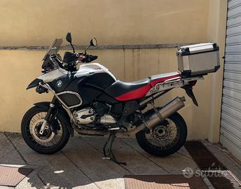 Vendo GS 1200 R adventure, km 193.000, anno 2006 modello 2007, tagliandi officina autorizzata bmw, buone condizioni generali, no abs (escluso con by pass da officina bmw) gommata medio tassello al 60%, cupolino e deflettori fumè, traversino manubrio, faretti supplementari, piastra cavalletto laterale anti-affondamento, ammortizzatore con serbatoio esterno al telelever, manopole riscaldate, bauletto centrale metallo givi, collettori di scarico e terminale Laser (ho gli originali), moto vissuta e mantenuta, è ferma da qualche mese per inutilizzo, "vista e piaciuta".