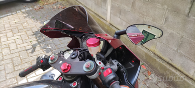Monta poetatarga sportivo, scarico MIVV delta race, pompa brembo rcs19 , tubi in treccia, cupolino fumè, pedane arretrate regolabili, filtro aria lavabile, centralina power commander 3+ cambio elettronico dynojet, dischi a margherita, sospensioni anteriori e monoammortizzatore posteriore OHLINS, kit viteria in ergal, protezioni serbatoio, accessori lightech, protezioni leve, specchietti più piccoli, tamponi paracadute.