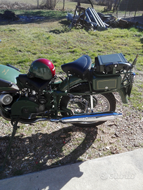 Moto restaurata anni fa', motore rifatto,cromature ottime, tutto in buono stato con documenti,ma radiata d'ufficio.in dotazione di serie, radio ricetrasmittente,sirena e altro . Immatricolazione militare anni cinquanta.