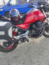 V85tt, rosso vulcano del 2019, 34400 km, valige laterali urban, bauletto givi, parafango anteriore e paramani capo nord, cupolino maggiorato, cupolino ermax fumé, collettori maggiorati + incrocio libero e filtro aria sportivo, centralina rapid bike, dunlop Meridian, sella comfort + originale, sospensioni rifatte da Oram con molla lineare. Dispongo dei pezzi originali.
