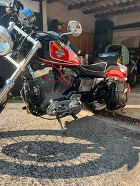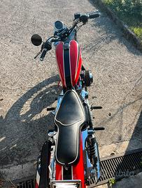 H-D sportster 883 castomizzato, carrozzeria riverniciata x motivi puramente estetici e telaio con vernice originale, motore elaborato a 1200cc con all'attivo circa 6000 km, gomme all'80%, sella artigianale, borsa laterale in pelle nera, sostituzione di varie parti ma, le originali le consegno alla vendita. La moto non ha mai subito incidenti e non è mai caduta a terra, sempre garage.