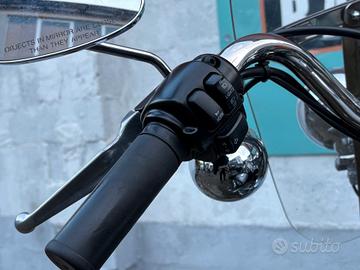 La forcella Springer, con meccanica a vista e cromature importanti, definisce il carattere di questa moto. Il Twin Cam a carburatore garantisce un'erogazione piena, corposa e un feeling autentico, oggi sempre più ricercato.