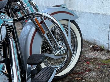 La Heritage Springer è una delle Harley più iconiche mai prodotte: estetica senza tempo, meccanica vera, presenza scenica inconfondibile.