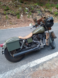 Vendo per inutilizzo Harley Davidson 1450 a carburatore. Prodotta nel 1999, immatricolata nel 2000. Carburatore maggiorato e perfettamente carburato. Scarico supertrapp 2 in 1. Tagliando completo effettuato. Nessun lavoro da svolgere. La moto è a puntino. Stile vintage, no cromature , no lucidature, vernice opaca verde Nato. Borse in metallo ermetiche e impermeabili, parabrezza old style 1940, paragambe artigianale, tutto removibile e/o modificabile. Sella in cuoio Toscano artigianale. Sospensioni progressive.