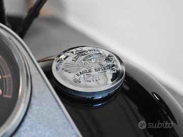 Accessori inclusi: scarichi più originale, sella con molle, portapacchi cromato harley, pedane nostalgic posteriori, cromature, leve cromo, orologio, kit abbassamento posteriore, borsa wild hog, sella due posti harley, frecce fumè + originali, Sissy Bar