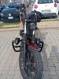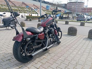 Vendo Harley883n con assetto posteriore ribassato, scarico screamin Eagle, manubrio ape hanger da 8 pollici, kit spostamento bobina, filtro sportivo piccolo impianto stereo. Bull bar e sissybar. Sella nuova diamond e sellino passeggero diamond, pedane avanzate.. wrapping carbonio forgiato rosso e nero.. faro full led..puntale nero fronte moto.. tappo serbatoio corona ricavato dal pieno .. doppie chiavi e antifurto con allarme spostamento.. sento offerte, prezzo trattabile no perditempo grazie .. le foto sono quelle che vedete