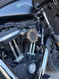 DATI TECNICI Motore bicilindrico V-TWIN da 883 cc 48 Cv 70 Nm a 3750 giri/min 260 Kg in ordine di marcia 12,5 L capacità di serbatoio Immatricolata 03/2015 Km 6400 DESCRIZIONE Solo metallo, strada e intenzione. È una moto che sembra dirti: "se vuoi salire, devi capirmi". E quando la accendi... vibra, non in modo elegante, ma vivo. Ti ricorda che sotto di te c'è un cuore meccanico vero, che pulsa lento e deciso. Non è fatta per correre forte, è fatta per farti sentire ogni metro. Ogni cambio marcia è fisico, ogni accelerazione è una spinta grezza, sincera. La 883 Iron non ti porta semplicemente da un punto A a un punto B. Ti accompagna in uno stato d'animo. Non è la moto perfetta, ed è proprio per questo che è così vera. In dotazione scarico Vance Hines, manubrio ribassato, serbatoio rialzato, borsa laterale Python Road. Tutti i pezzi originali disponibili.