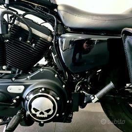 Moto in ottime condizioni. Accessori: Manubrio Dragbar, Grglia faro anteriore, Piastra riser con cover Skull, Manopole Skull, Tappo serbatoio PopUp, Filtro aria Aftermarket, Terminali Vance & Hines, Indicatori di direzione Fumè, derbi cover aftermarket, Manometro temperatura olio, Portatarga laterale, Borsa laterale aftermarket, Cavi candele Screamin' Eagle, Derbi cover Aftermarket, Strumentazione laterale, Puntale motore, Sella Badlander. Passaggio di proprietà a carico dell'acquirente. Garanzia concessionario 12 mesi. [Cod: 1344811-10831] [Veicolo: 420900]