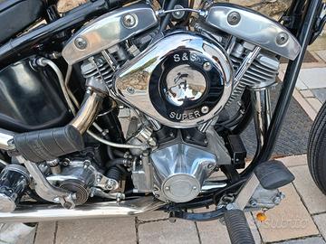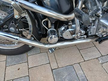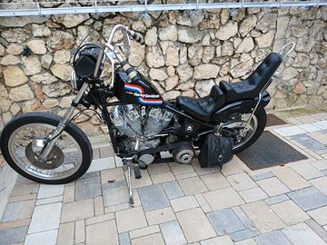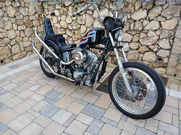 Chopper Harley Davidson su base Showellead 1200 anno 1969,telaio rigido cerchi Borrani anteriore 21 posteriore 18,più a libretto altre misure. Moto in ottime condizioni motore rifatto nuovo 3 anni fa e all'attivo forse 3000 km.