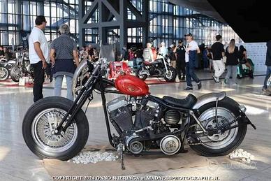 Vendo o permuto Harley 1340 special, con Royal Enfield Interceptor, BMW Urban GS o Triumph T100. Naturalmente mi rivolgo a persone che sanno cosa significa creare una moto del genere. Bobber in Stile Ostile. Telaio tipo Shovel. Molti pezzi fatti al tornio da Stile Ostile Garage: cupolino, supporto fari, manubrio, cambio a mano, barre rigide, supporto filtro olio, leva del freno, supporto pedane rialzate, supporti parafango, tappo serbatoio e altri piccoli accorgimenti, creati e costruiti da Stile Ostile Garage. Serbatoio degli anni 60 verniciato e customizzato da Ringo Pinstray. Forcella Springer. Leva freno CustomTeack, Fari anteriori di moto epoca anni 50. Fanalino posteriore inserito in microfono originale anni 50. Carburatore SU. Accensione a pedalina, no elettrico. Filtro olio Panhead, Primaria aperta da 3 pollici, comandi al manubrio minimal. Pedane posteriori per passeggero. Sellino a ventose per passeggero. Attacchi candele in stile vintage. Cerchi a razze grandi. Cerchi Moon posteriori. Sella costruita da customizzatore apposito. Targa laterale a filo ruota quindi a norma di legge. Fari, frecce, gomme, a norma di legge. E' una moto che bisogna saperla guidare, ha solo cambio a mano e acensione a pedalina. Non è per neofiti. Ovviamente il lavoro per portarla allo stato attuale è costato molto di più della cifra richiesta. Per altre informazioni sono disponibile. Scrivere SOLO in privato. NON RISPONDO AI COMMENTI. La vendo perchè abito in collina con strade sterrate e mi serve una moto più adatta a questi luoghi. Mi piacerebbe tenermela e averne una in più, ma come spesso capita, bisogna fare i conti col portafogli. E' una moto straordinaria da guidare. Un sound meraviglioso, burroso e profondo. Disponibili ammortizzatori e altro serbatoio per chi acquista. Prezzo trattabile