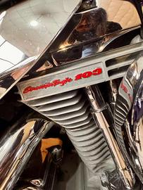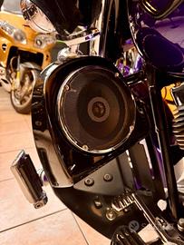 Manubrio ape hanger 1" 1/4, sella monoposto panebianco in gel, sella turing biposto, turpack a sgancio rapido, marmitte vance&hines, aerografia sul batwing, pedane su paramotore, deflettori paracalore, radio nautica con USB e Bluetooh, mantenitori di carica.
