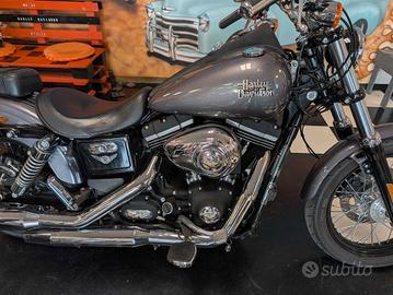 Harley Davidson Dyna Street Bob Abs 1690cc 103 immatricolata nel 2014 con 18.862 km percorsi. Moto bellissima, tenuta benissimo accessoriata con manubrio del SuperGlide, manopole Custom, pedane maggiorate, varie cover Live to Ride, sissybar con portapacchi a sgancio rapido, sellino e pedane passeggero, borsa in arrivo a sgancio rapido, leva cambio Harley, carter motore e primaria cromati e copri bulloni mozzo ruota anteriore. Moto appena tagliandata, verrà consegnata con controllo completo. Possibilità di finanziamento anche senza anticipo.