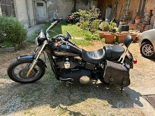 Harley Davidson Dyna 1600 Chilometri 44.458 Batteria nuovissima Scarichi Vance & Hines Shortshots cromati Scarichi originali compresi Borsa laterale in cuoio Schienale per passeggero