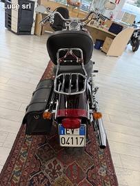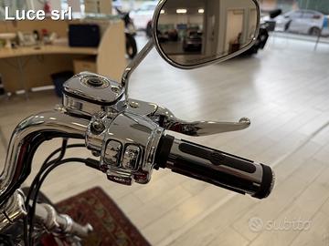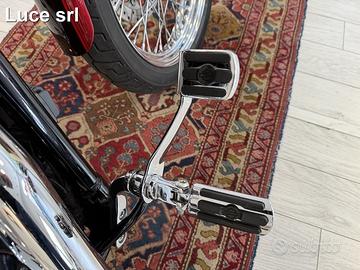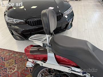 Accessori: Manopole e pedane serie acciaio e gomma HD, sissy bar con porta pacchi, borsa a sgancio rapido e scarichi omologati MCJ,